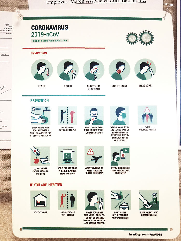 During this time of uncertainty, March Associates Construction is open for business at all of our office and field locations. We are committed to maintaining safe work environments both here at the home office and our various project sites. The following precautions have been put into place as we adapt to the current state of affairs: