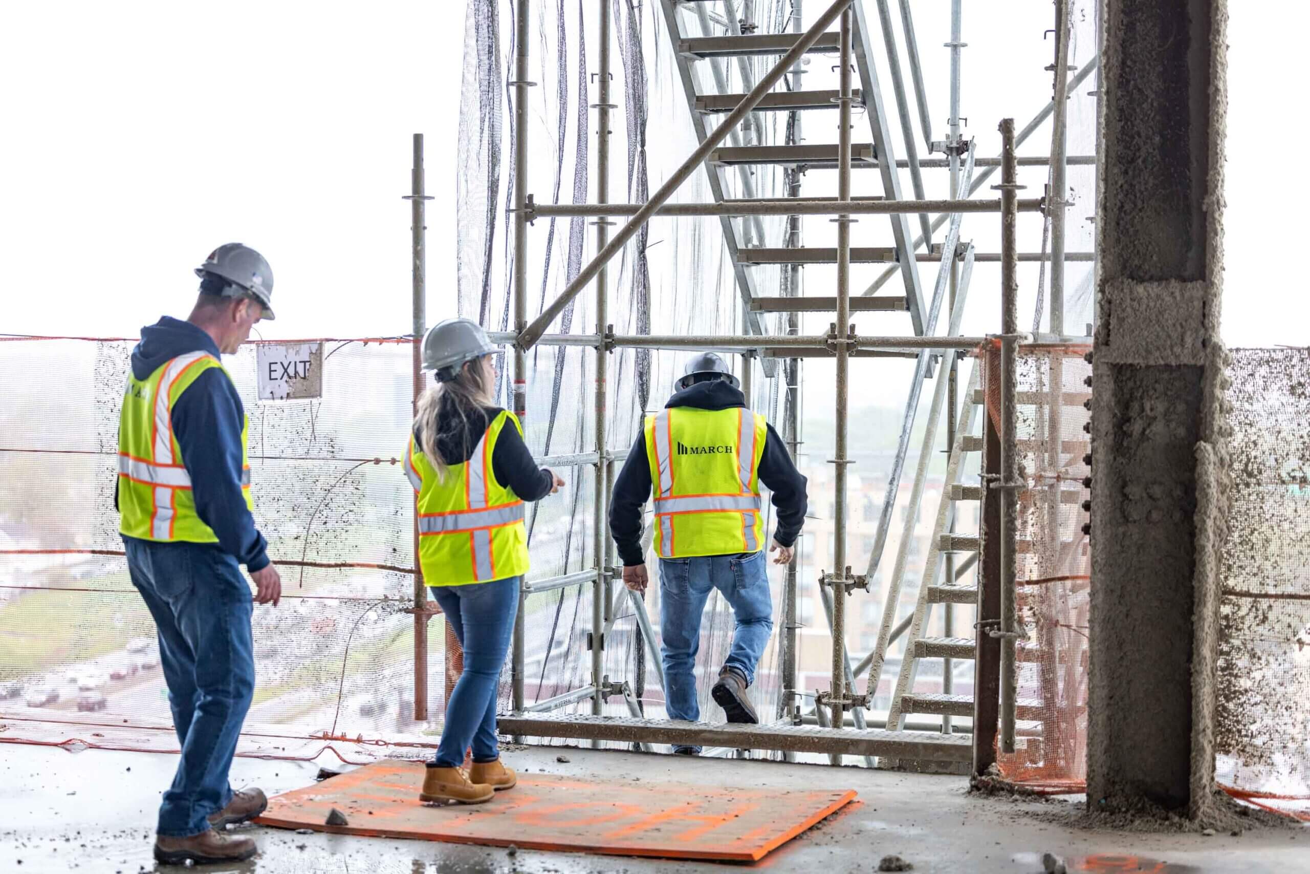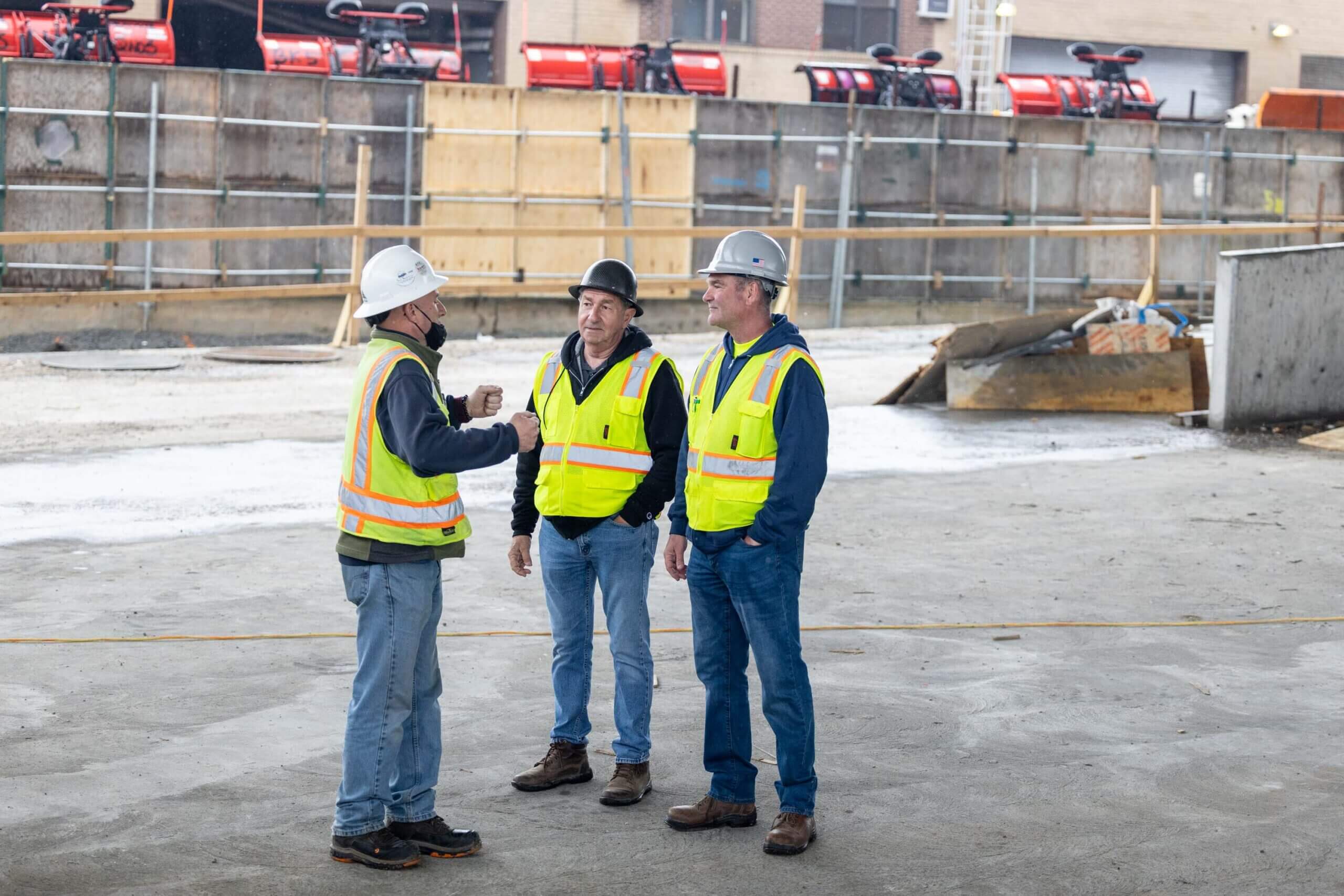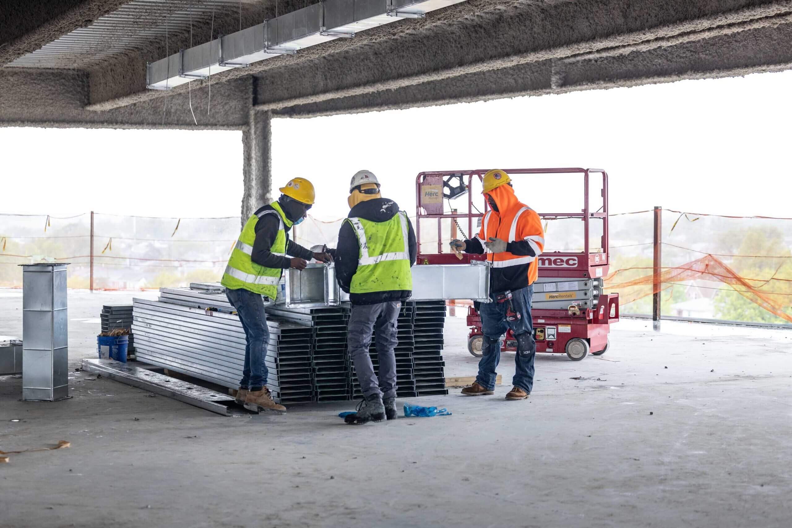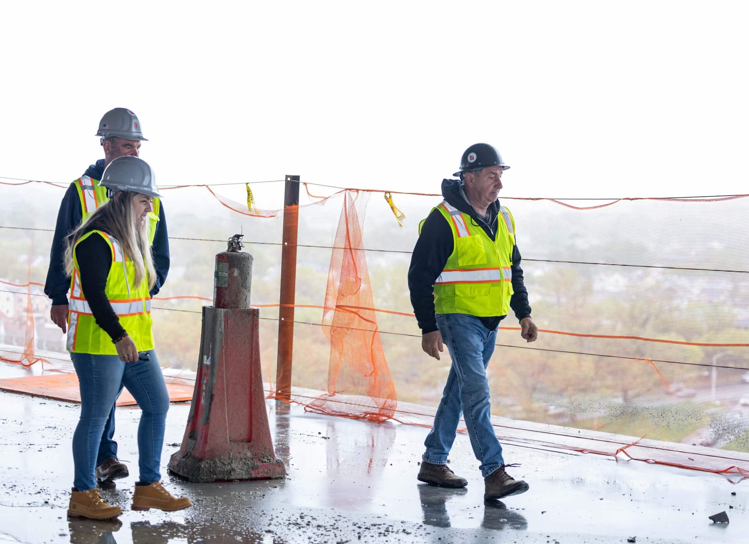 Our Safety Director Frank Brady and Field Operator Leila Stephan gathered workers together to refresh them on the safe use of ladders, scaffolds, aerial lifts, and harnesses. This meeting was held with Jim O’Sullivan and Carlos Paredes of Total Safety.