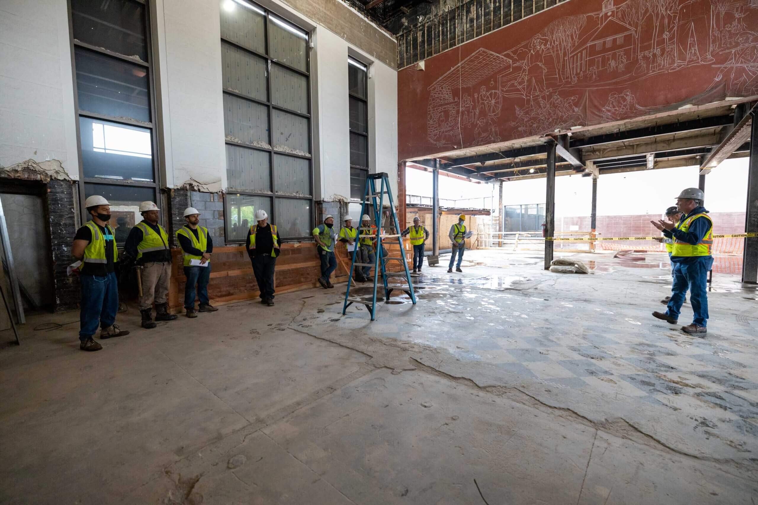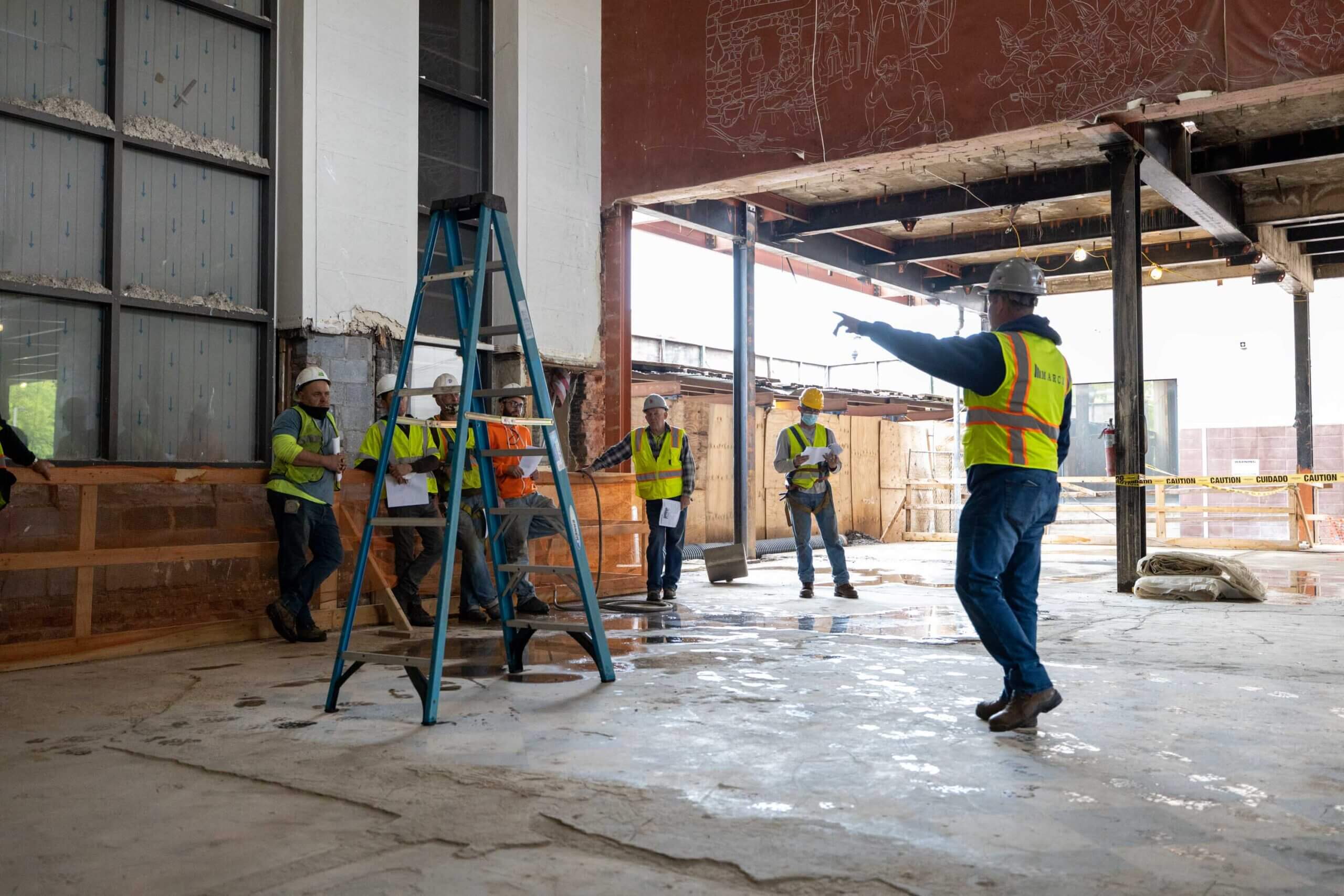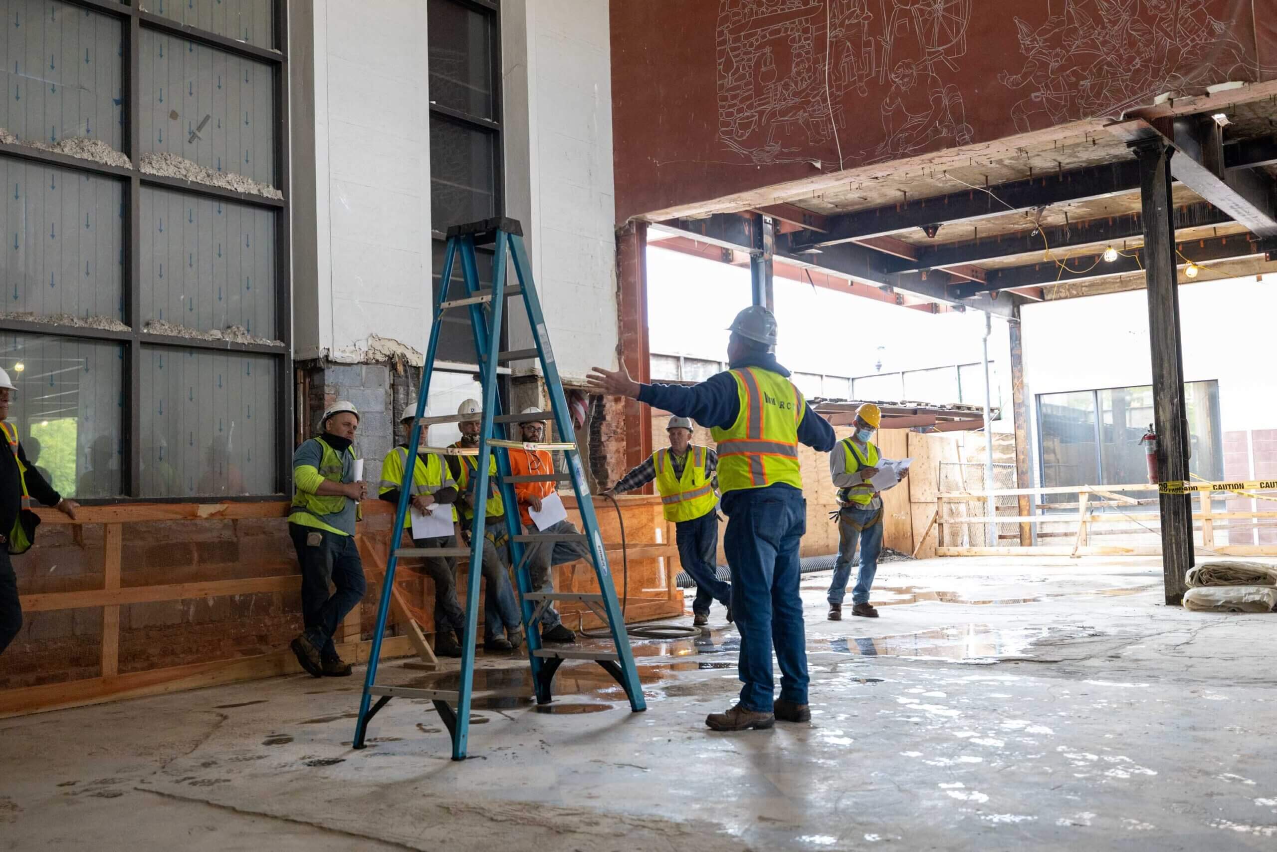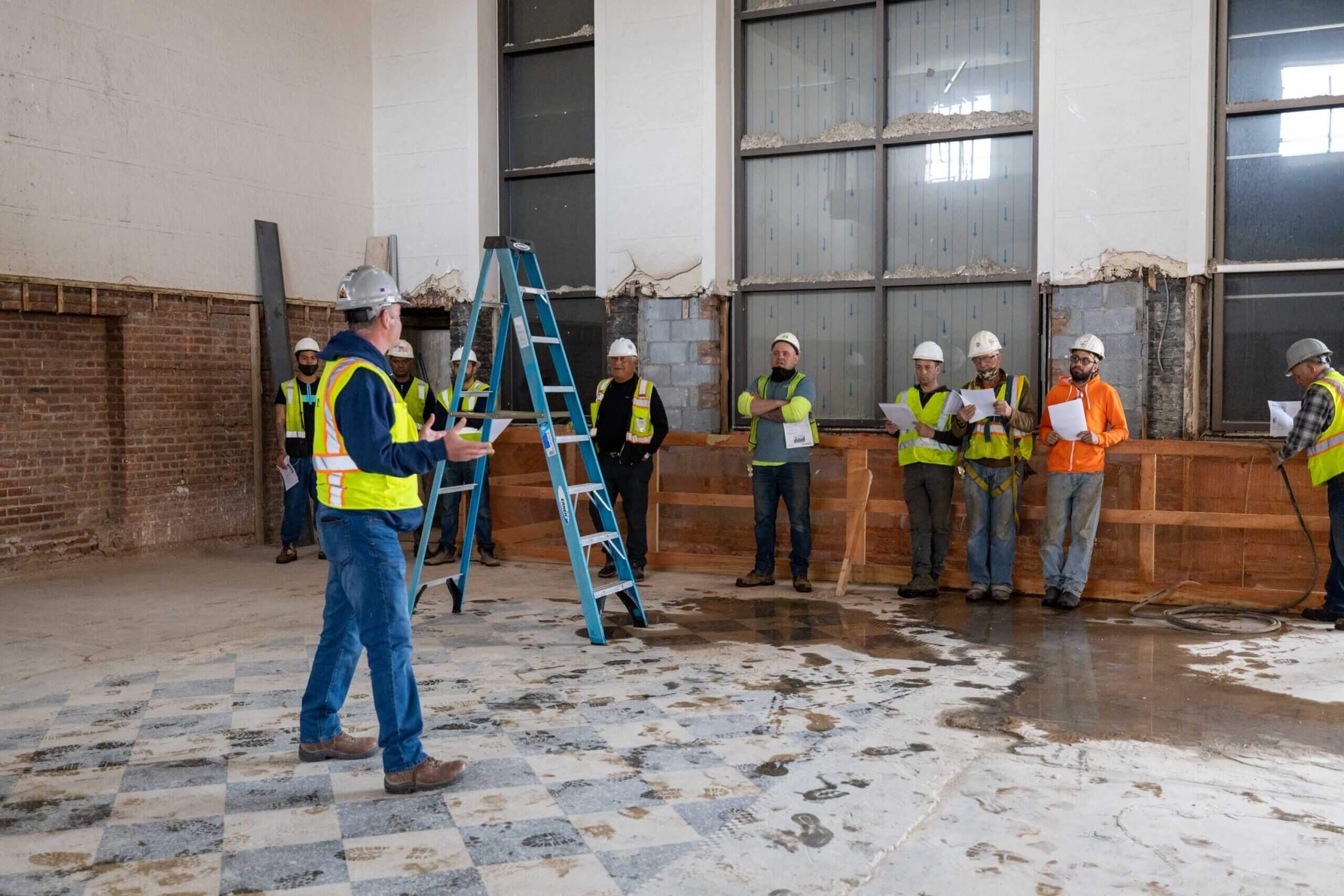 Our Safety Director Frank Brady and Field Operator Leila Stephan gathered workers together to refresh them on the safe use of ladders, scaffolds, aerial lifts, and harnesses.