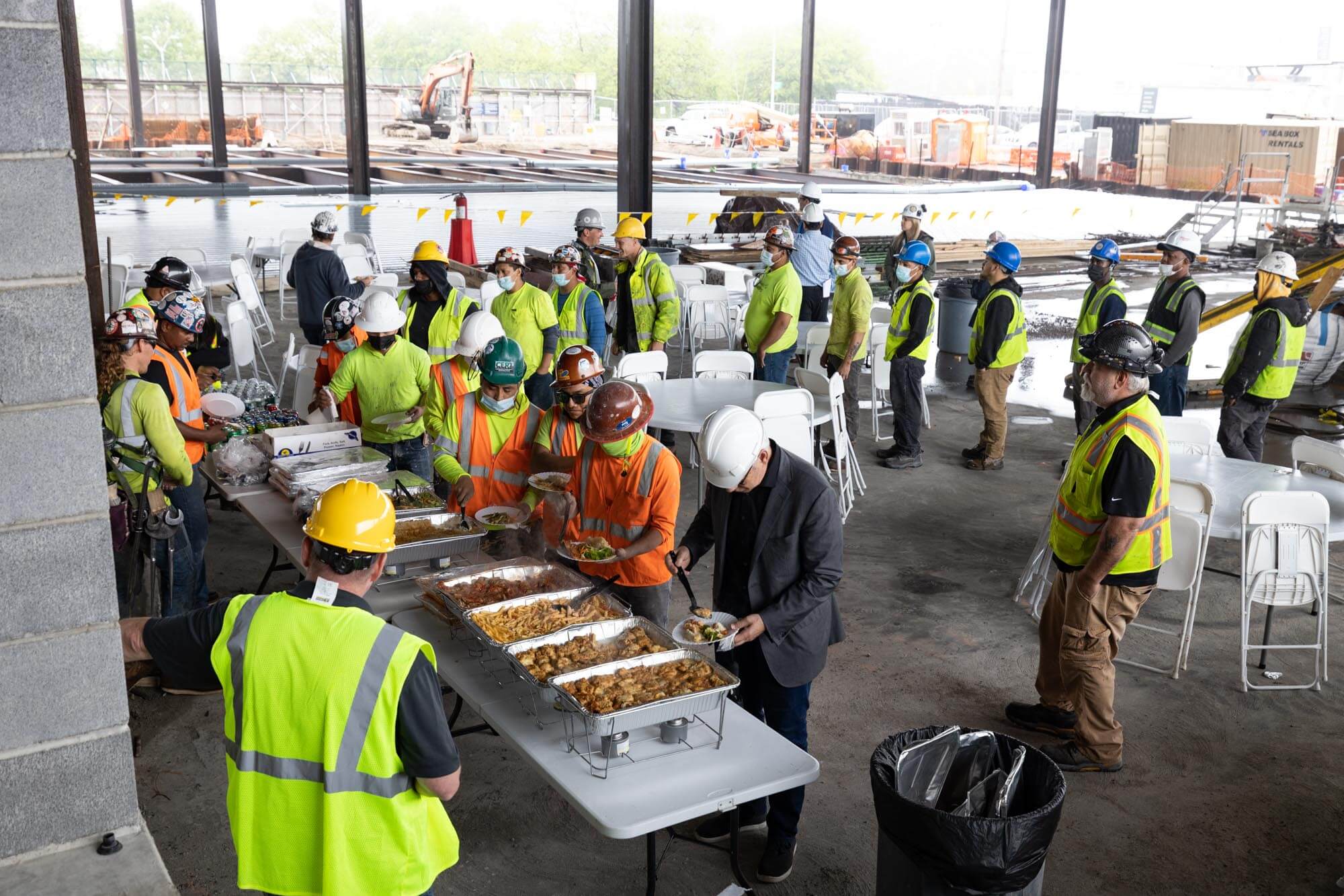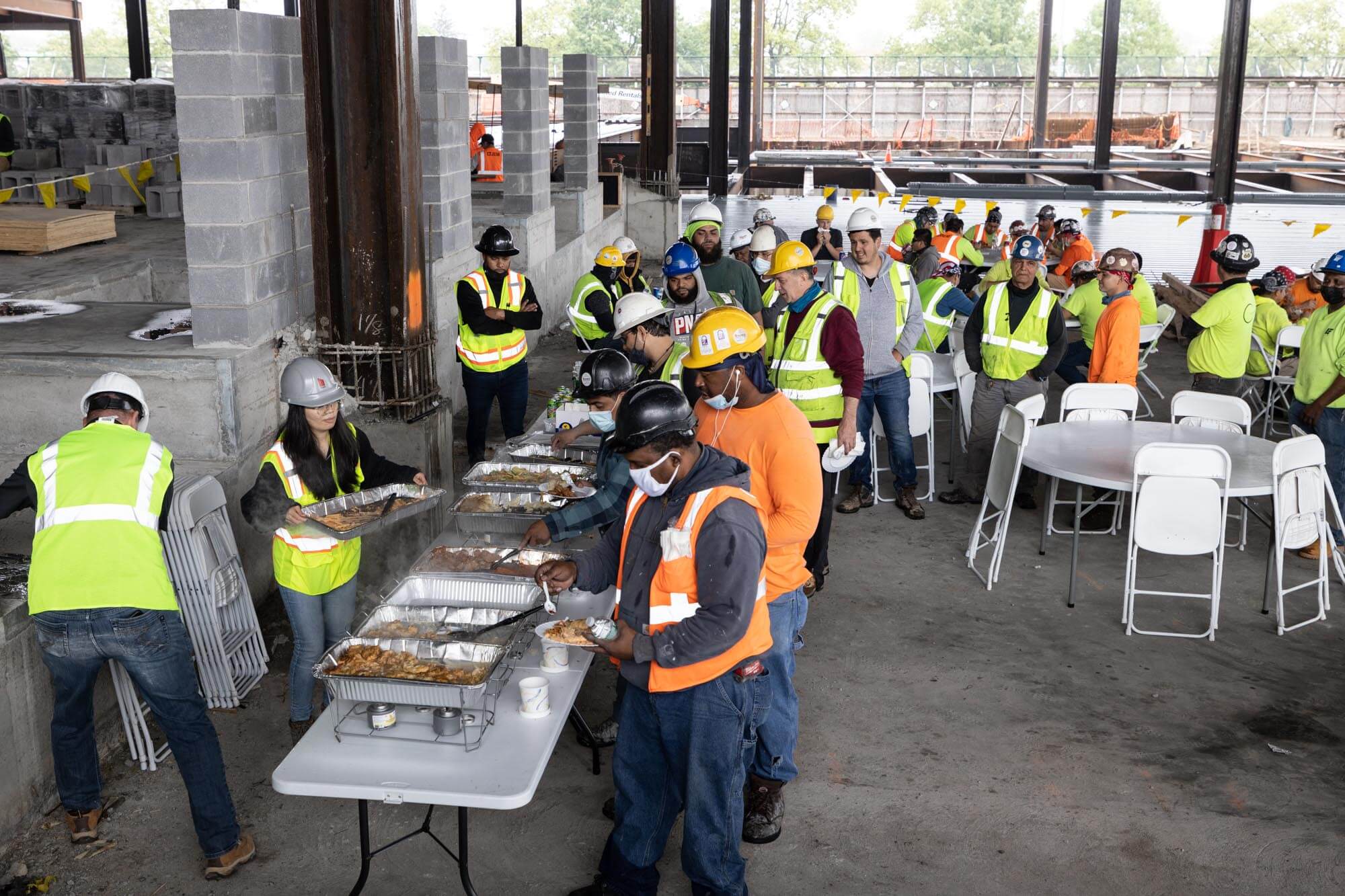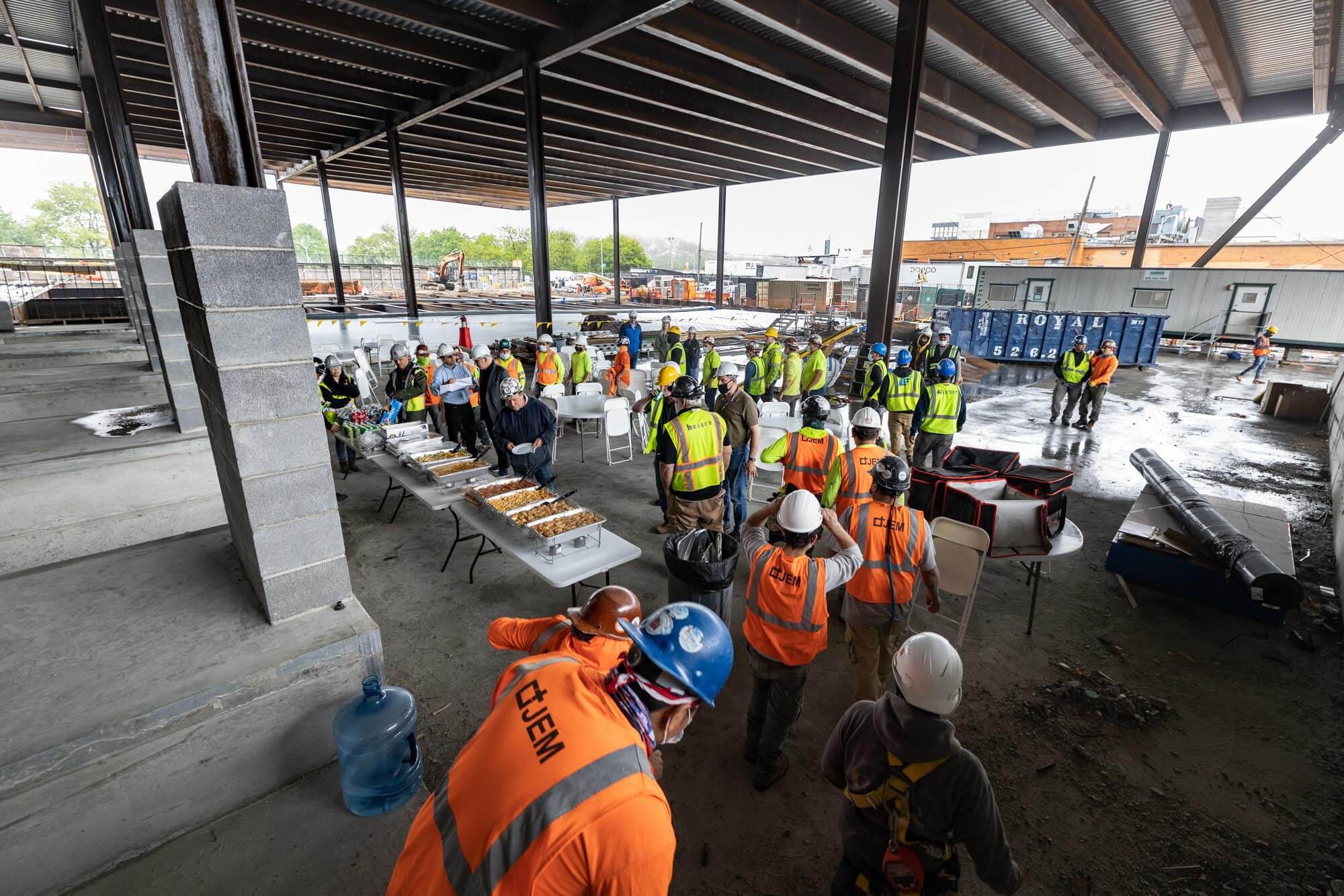 Congratulations to the Triangle Equities project team for reaching the topping-out milestone! March catered lunch for workers at the job site in celebration. A topping-out party is a builder’s ceremony traditionally held when the last beam is placed atop a structure during construction.