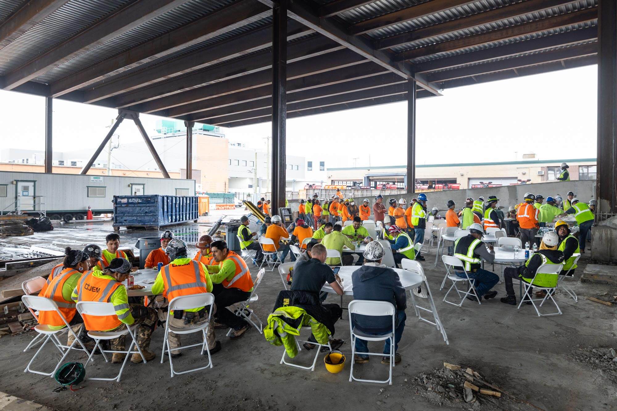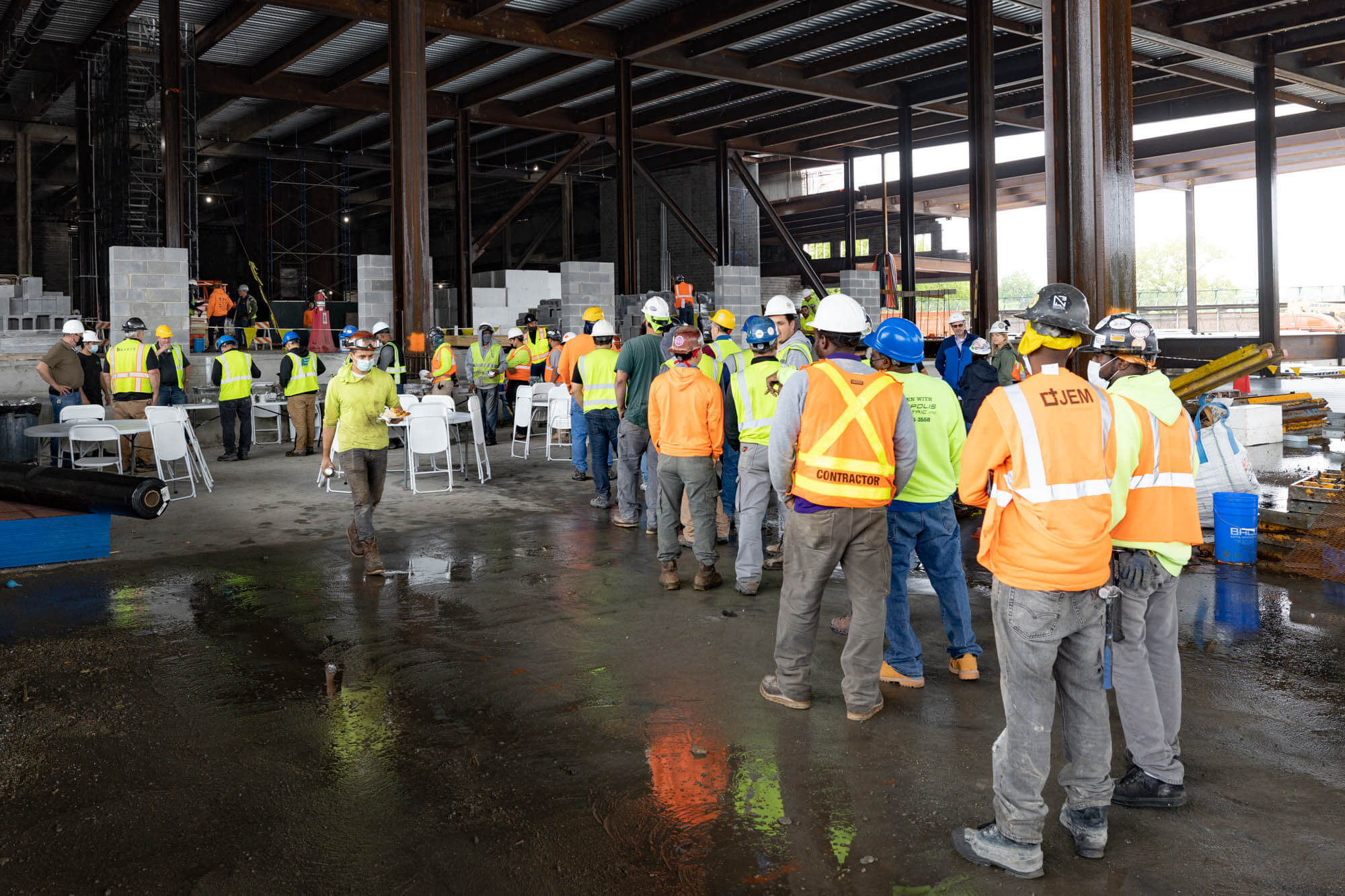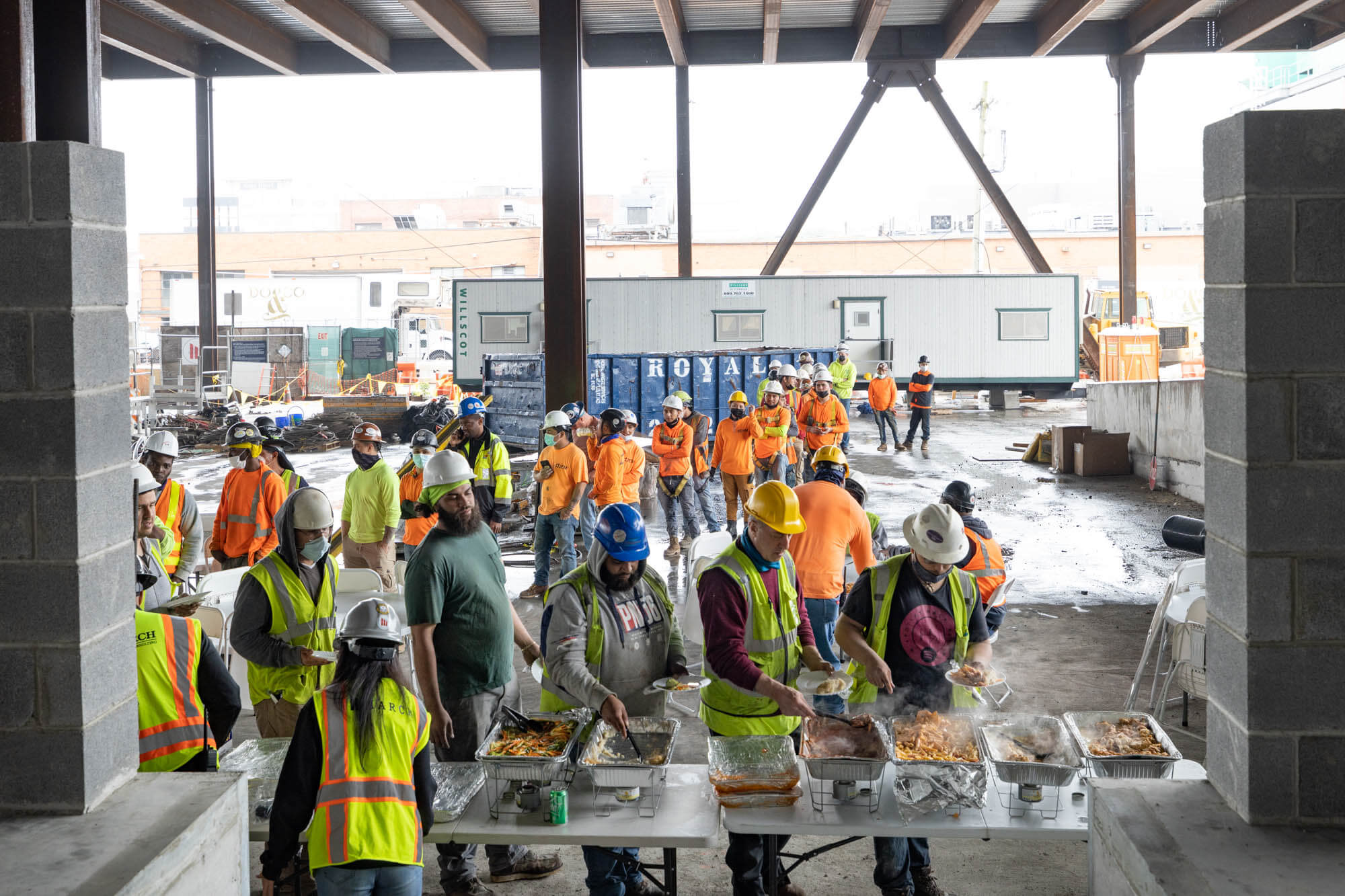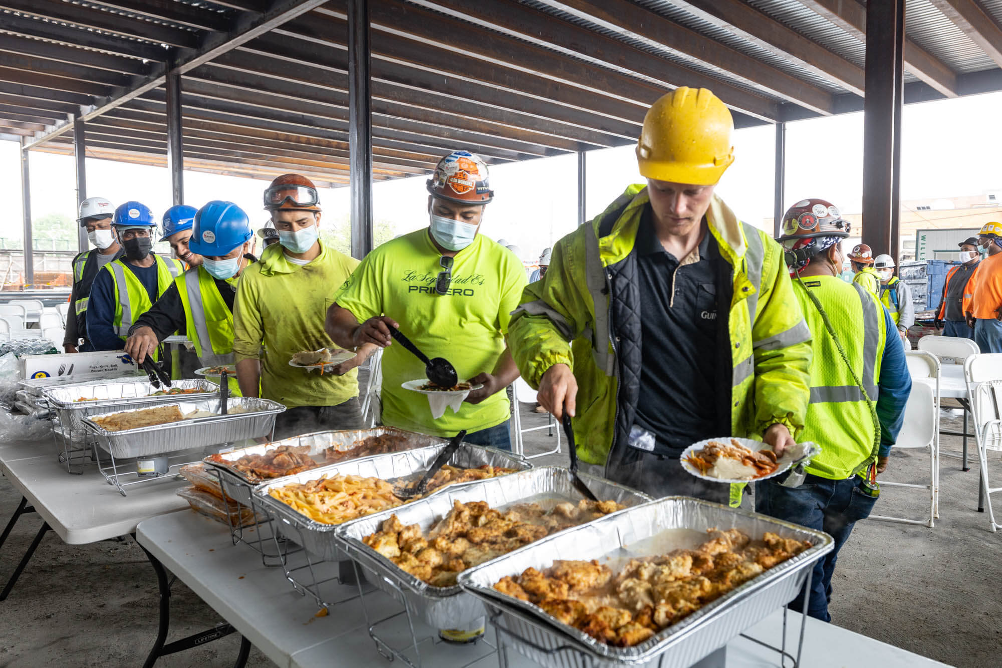 Congratulations to the Triangle Equities project team for reaching the topping-out milestone! March catered lunch for workers at the job site in celebration. A topping-out party is a builder’s ceremony traditionally held when the last beam is placed atop a structure during construction.