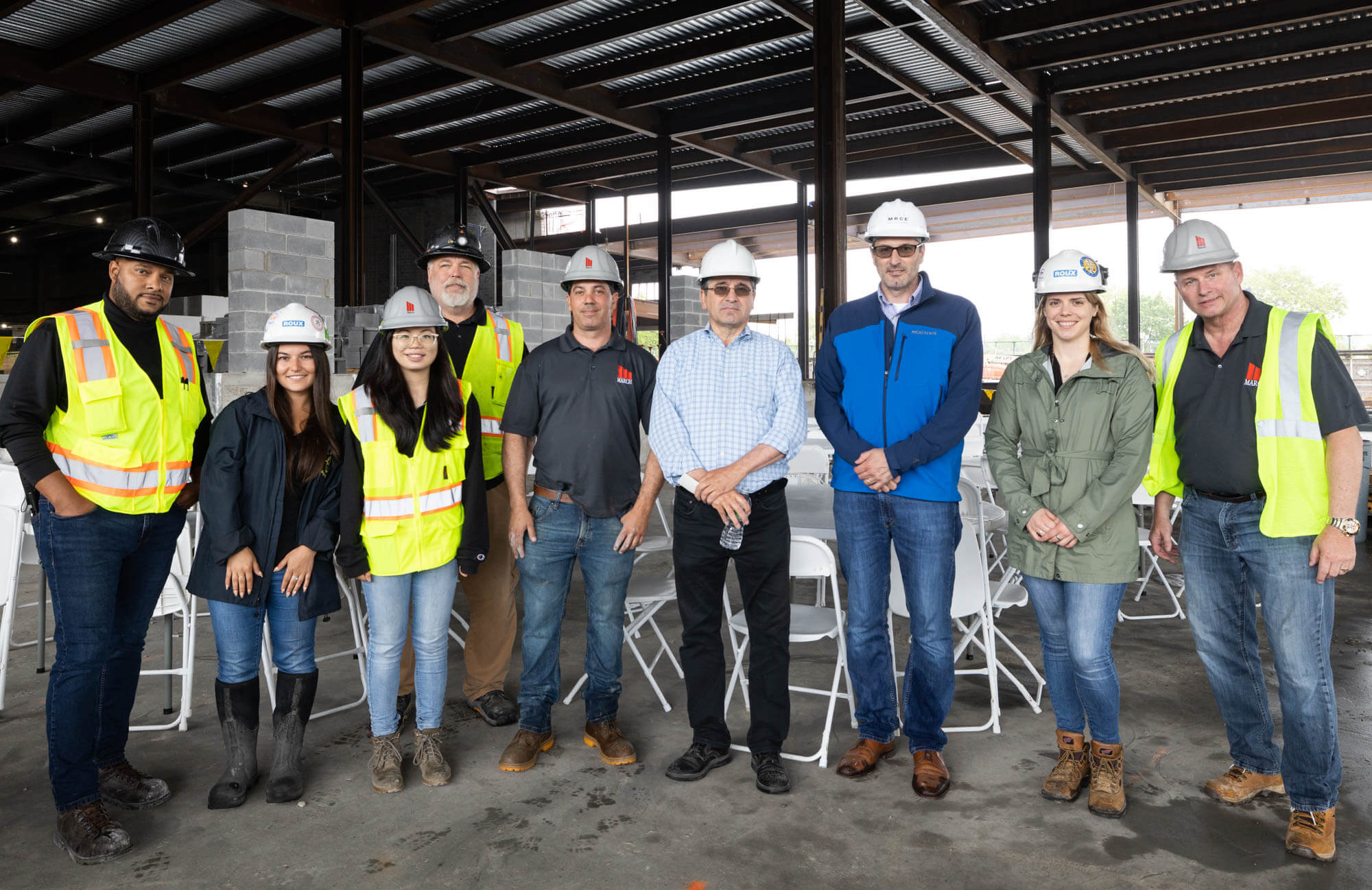 (Left to Right) Jonathan Larrahondo, Project Superintendent March; Victoria Caccamo, Roux Environmental; Renni Trinh, Assistant Project Manager; Dan Allds, Project Superintendent March; Sean Gallaby, Project Superintendent March; Kamran Mirfakhraie, Triangle Equities Owner; Tony Canale, MRCE Engineer; Rachel Henke, Roux Environmental; Gregory Hewitt, Project Manager March