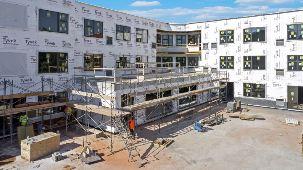 “Brick is close to being finished, roof is complete with rooftop equipment, and rough-in inspections are complete. The building is ready to start receiving interior and exterior finishes.”