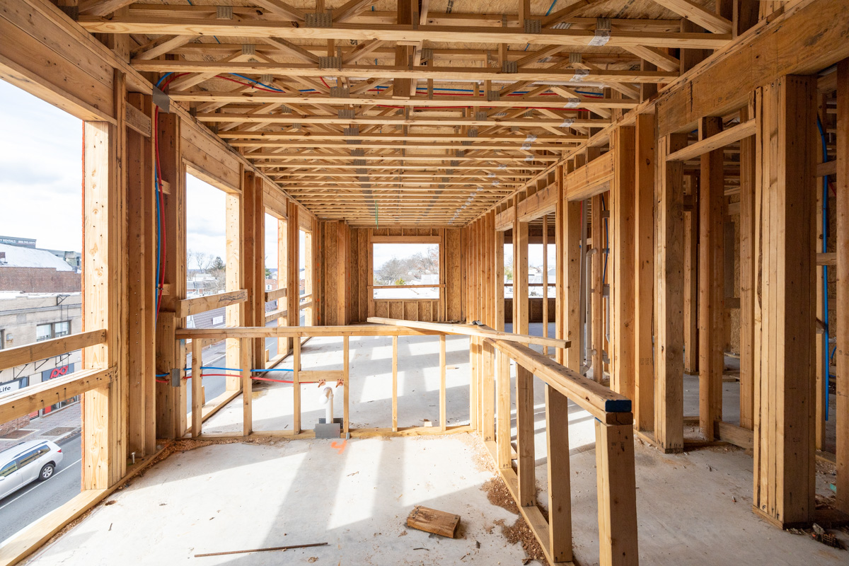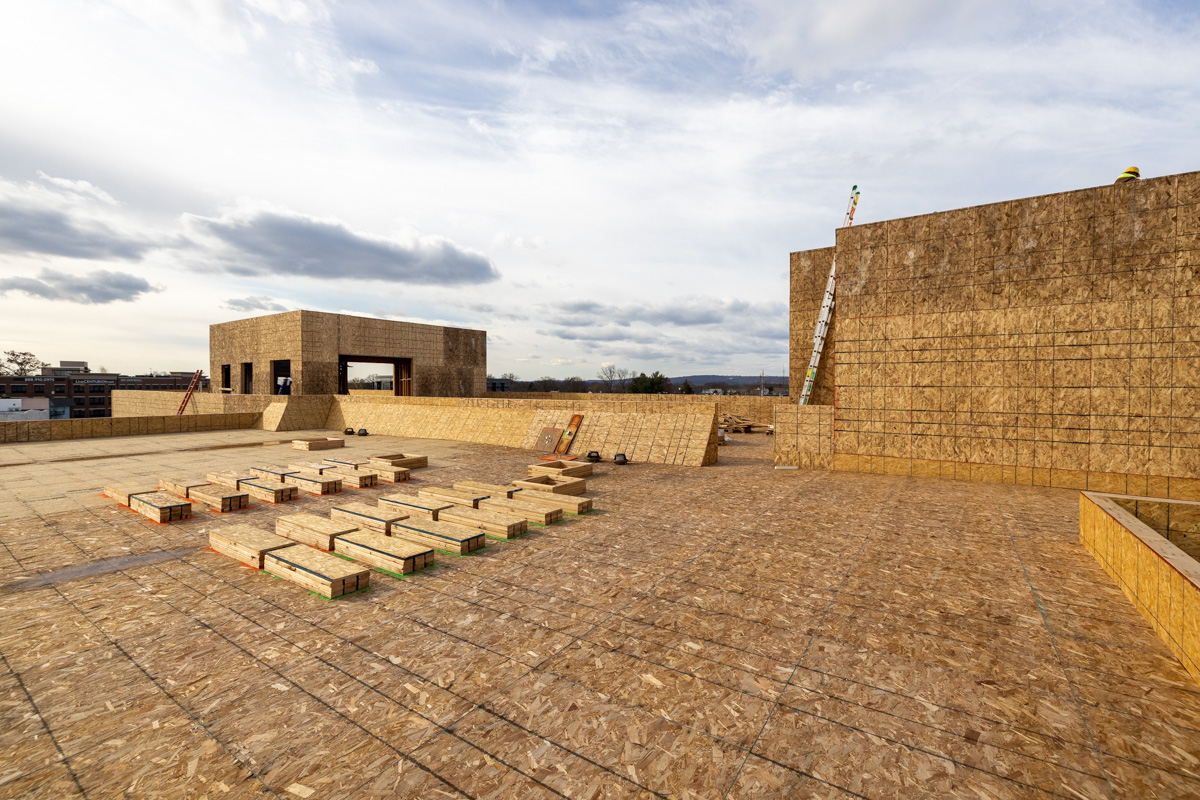 Amenities will include a gym, self-storage, work sharing space, resident lounge, event space, conference room, ground-floor retail, commercial kitchen, and separate office/resident terraces. Private offices will be on the 2nd floor and 43 residential units will span floors 2-5.