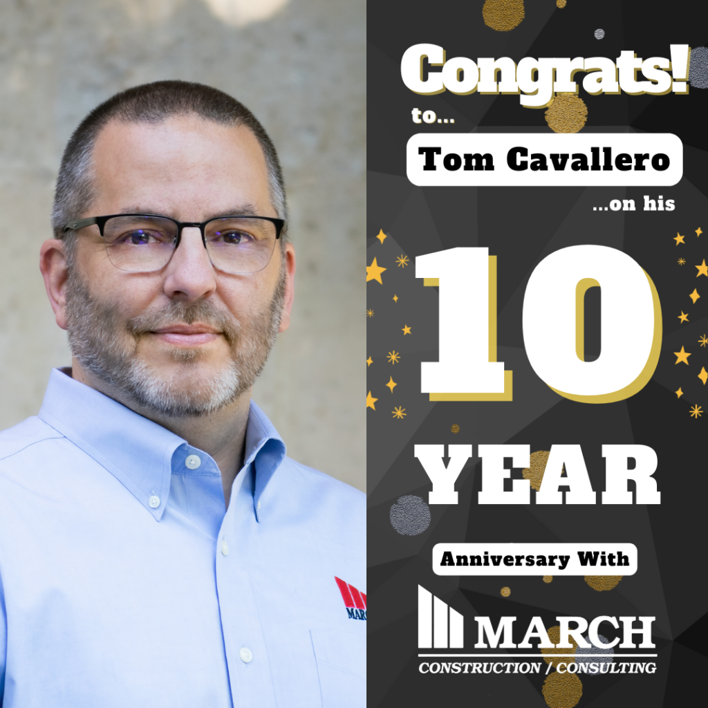 March Associates Construction would like to congratulate and recognize Tom Cavallero for his 10 years of service with the company!
