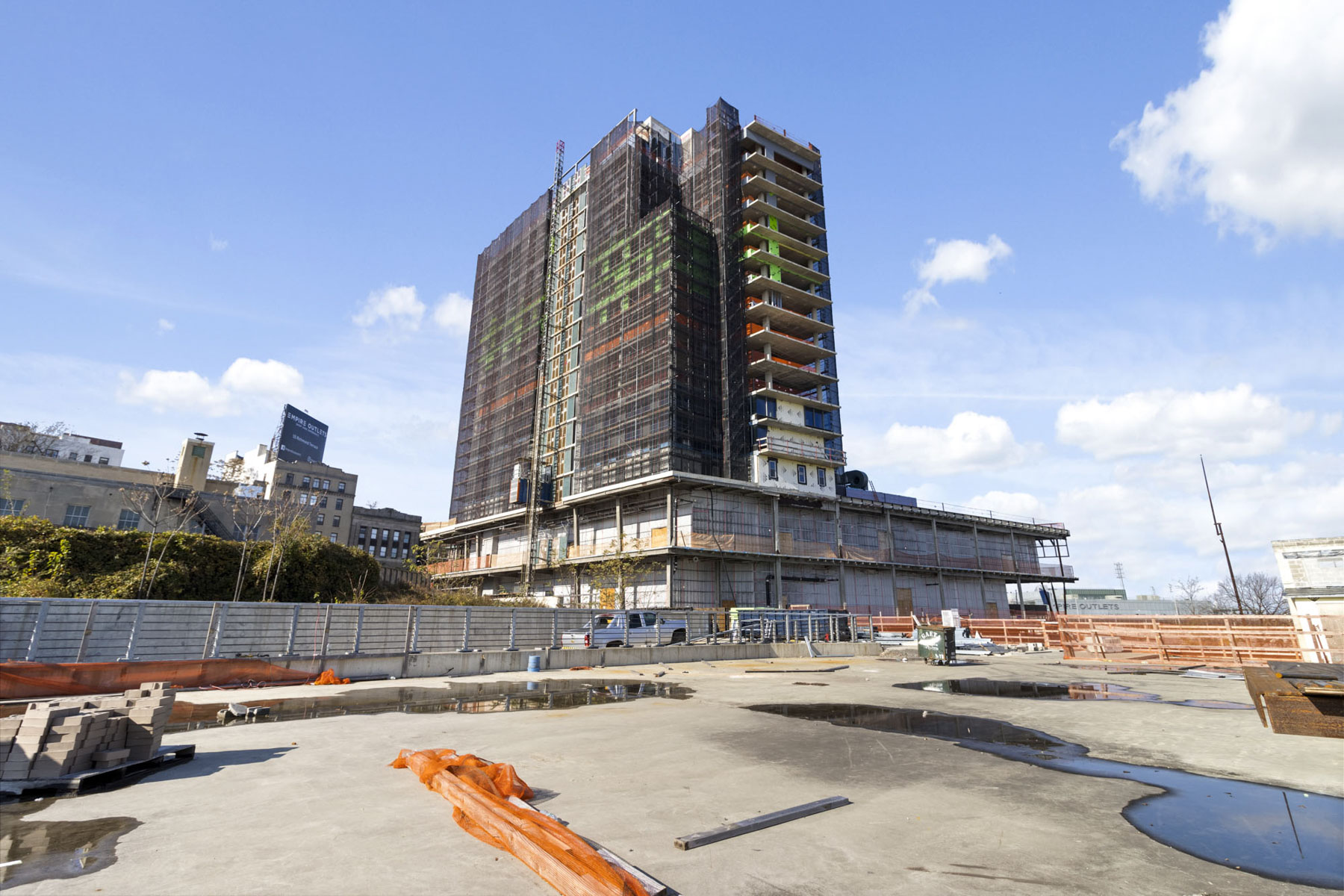 Above this, a residential tower will be built with 115 units and 20% allocated to affordable housing. A 300-space parking garage structure will provide plenty of parking for users and commuters. Developed by Triangle Equities with March as the Construction Manager.