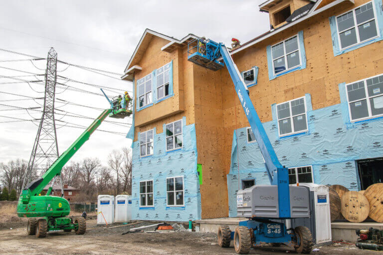 March is finishing the exterior facade of our Meridia Luxury Apartments project in Roselle Park, New Jersey. On the interior, sheetrock has been put up
