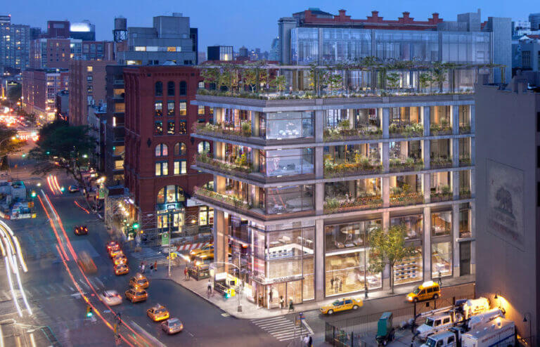 – Location – SOHO– 2 stories below grade 7 above.– Post tension concrete.– Entire facade clad in curtainwall, terracotta rainscreen.– Stainless steel lasercut railings.– Slab